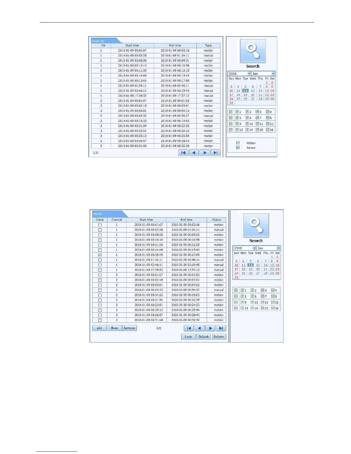 Step2: click the highlight date and select record channels and then tick off the event type: motion and sensor,