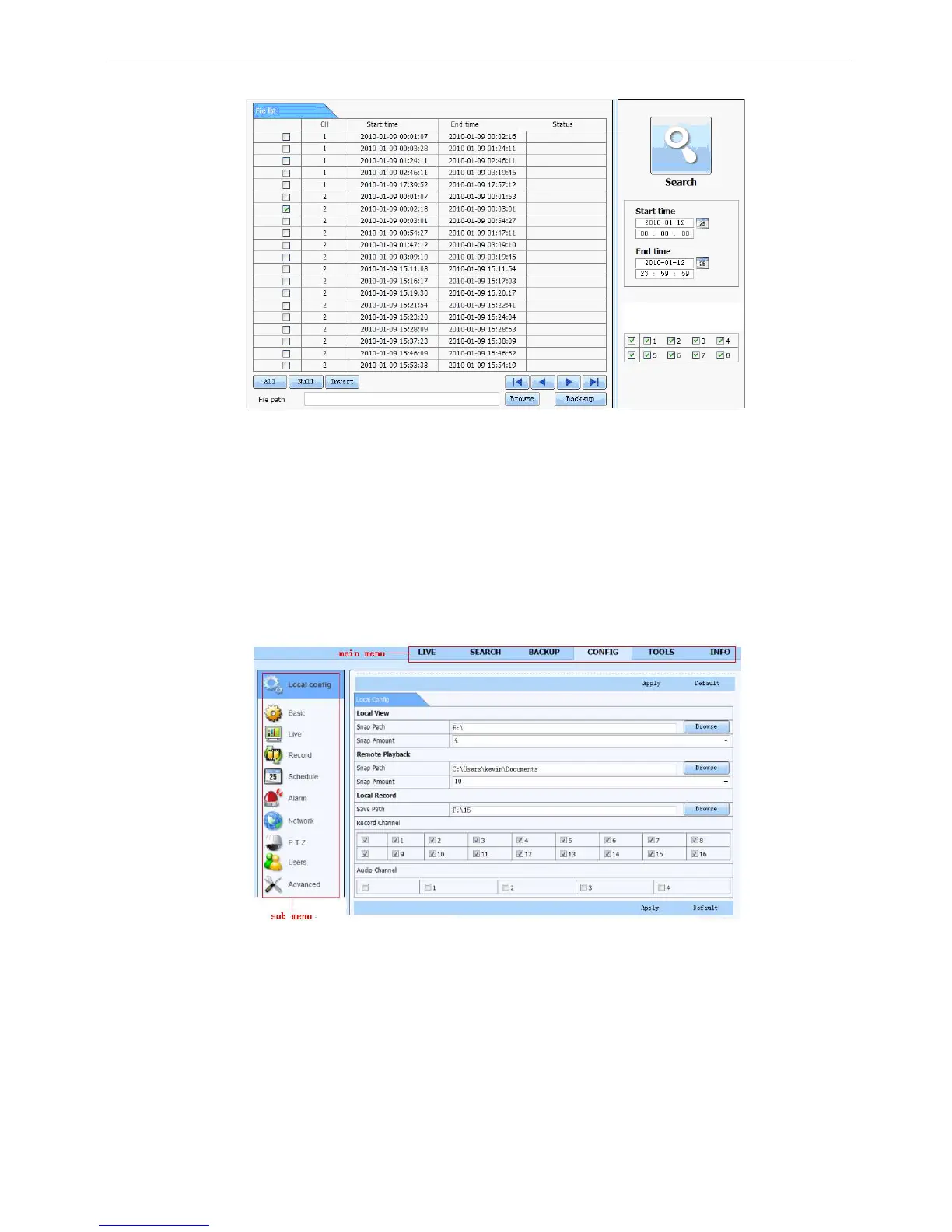 Step1: select channels, set the start and end time, then click “search’ button, the file information will be