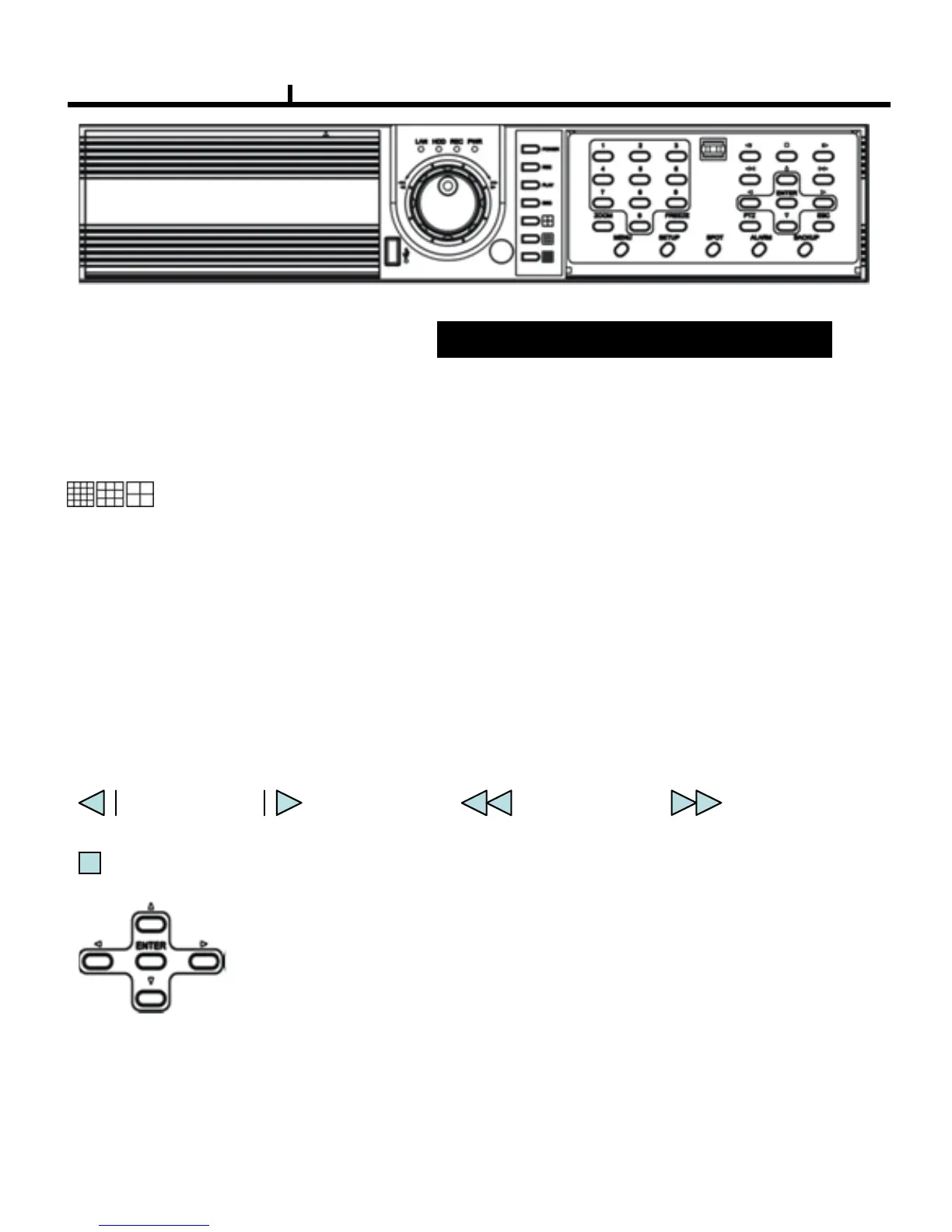 Power: DVR power On / Off button