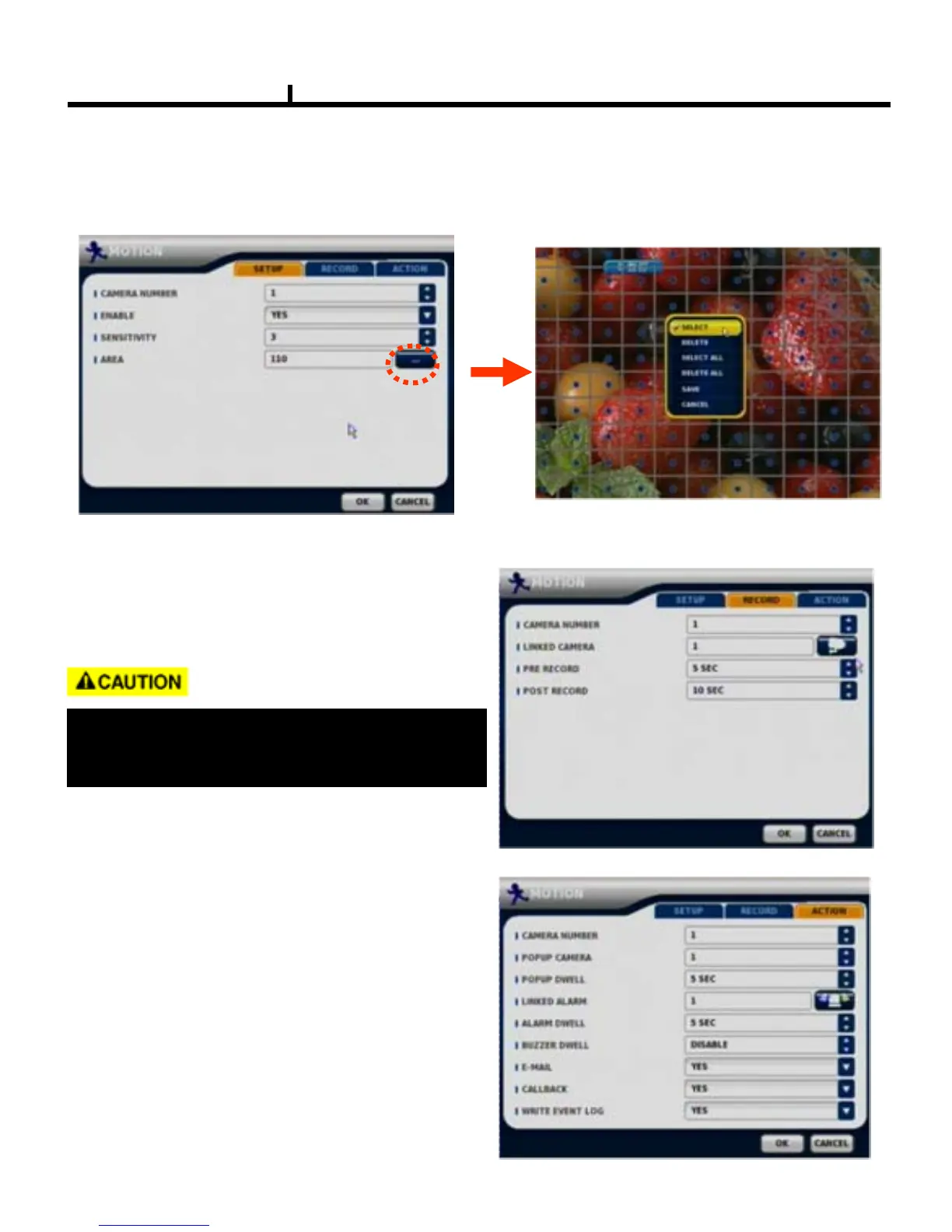 Set up the MOTION area & sensitivity.