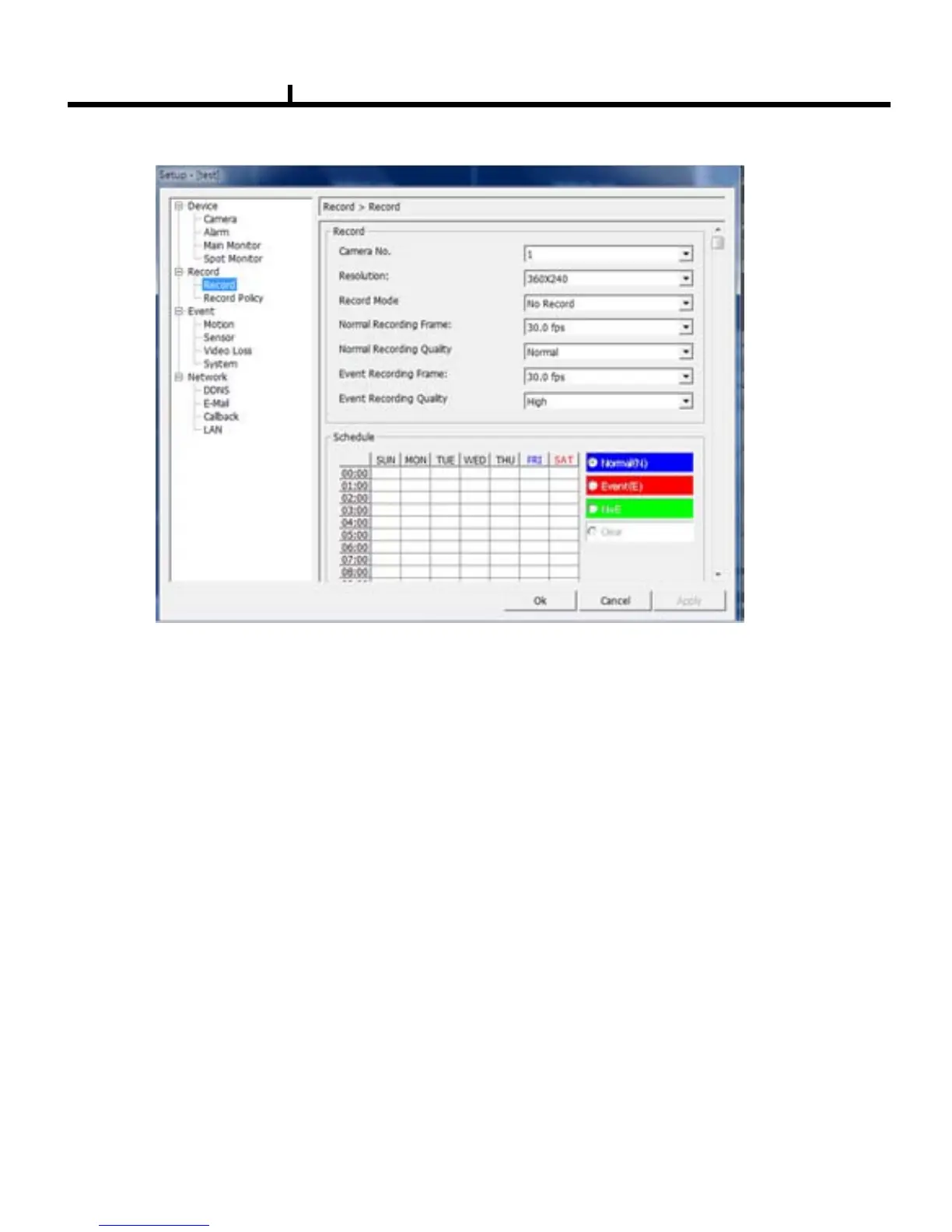 Record Mode : No Record / Normal Record / Event Record / N + E / Schedule Record