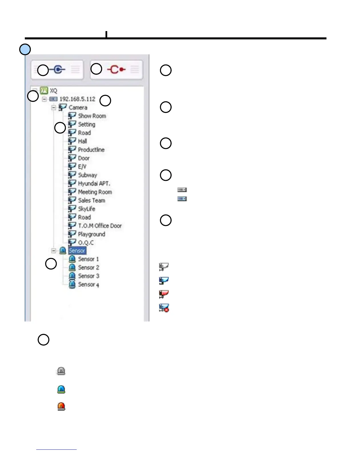 Indication of the camera status connected with the DVR