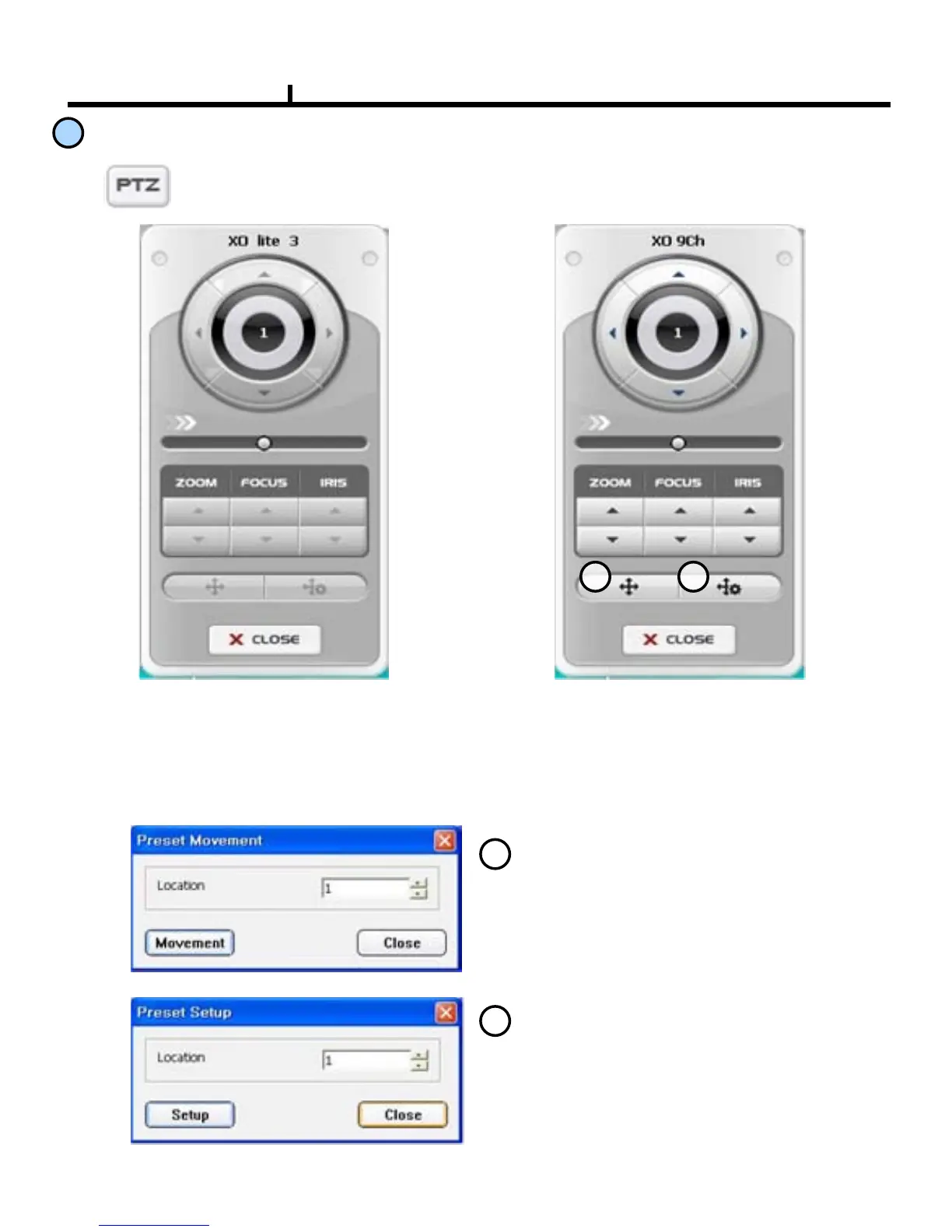 On clicking the PTZ button, the PTZ control panel appears. If the selected camera