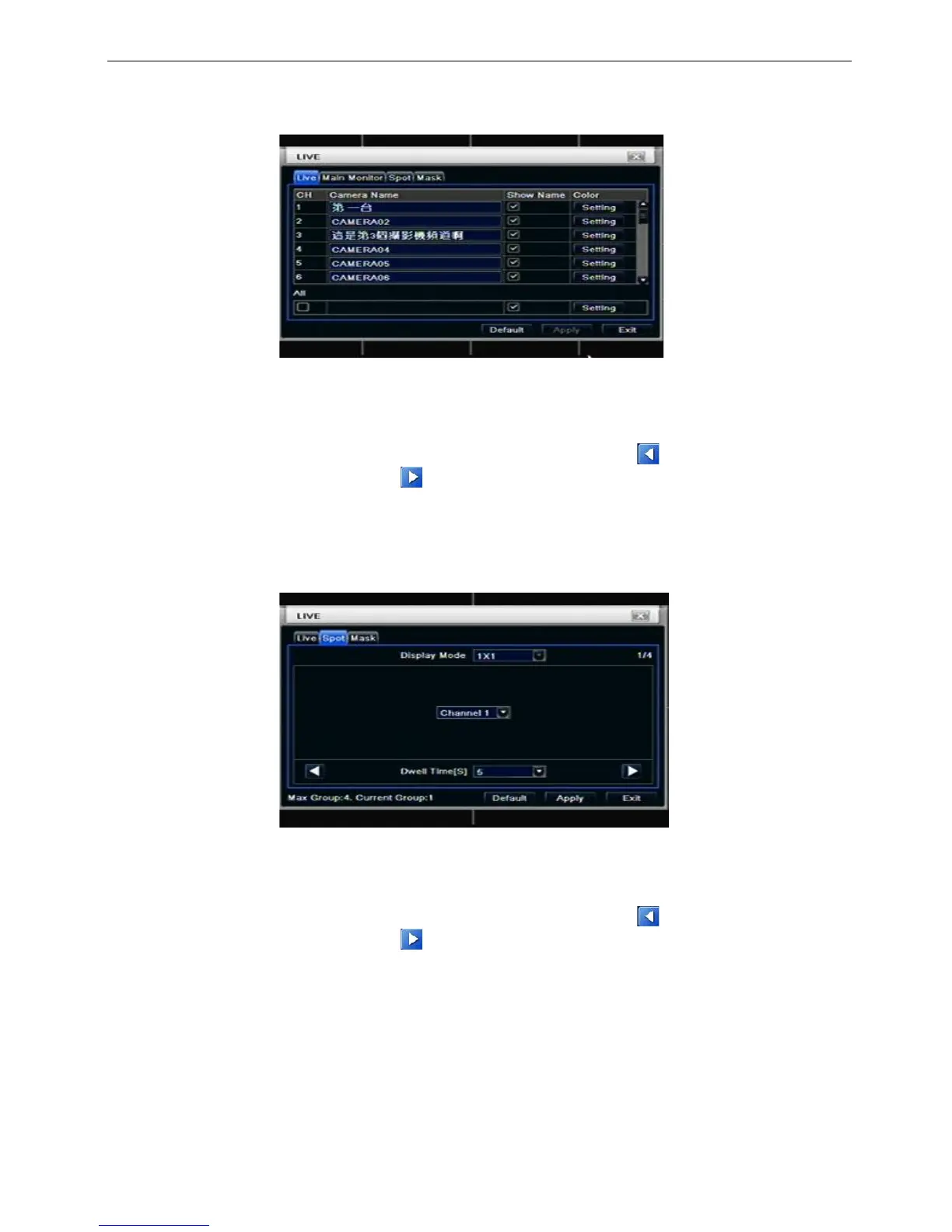 channel groups of dwell picture, click button to set the latter channel groups of dwell picture.