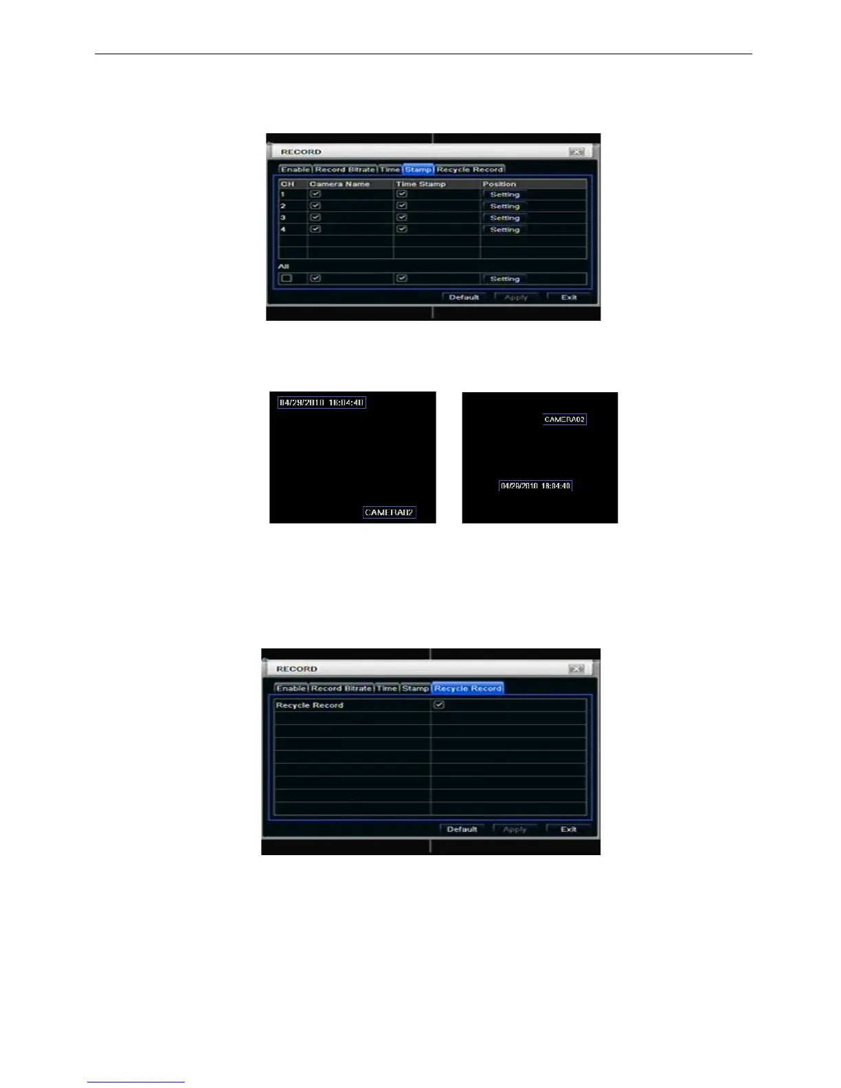 Stamp:User can overlap the channel name and time stamp on video.