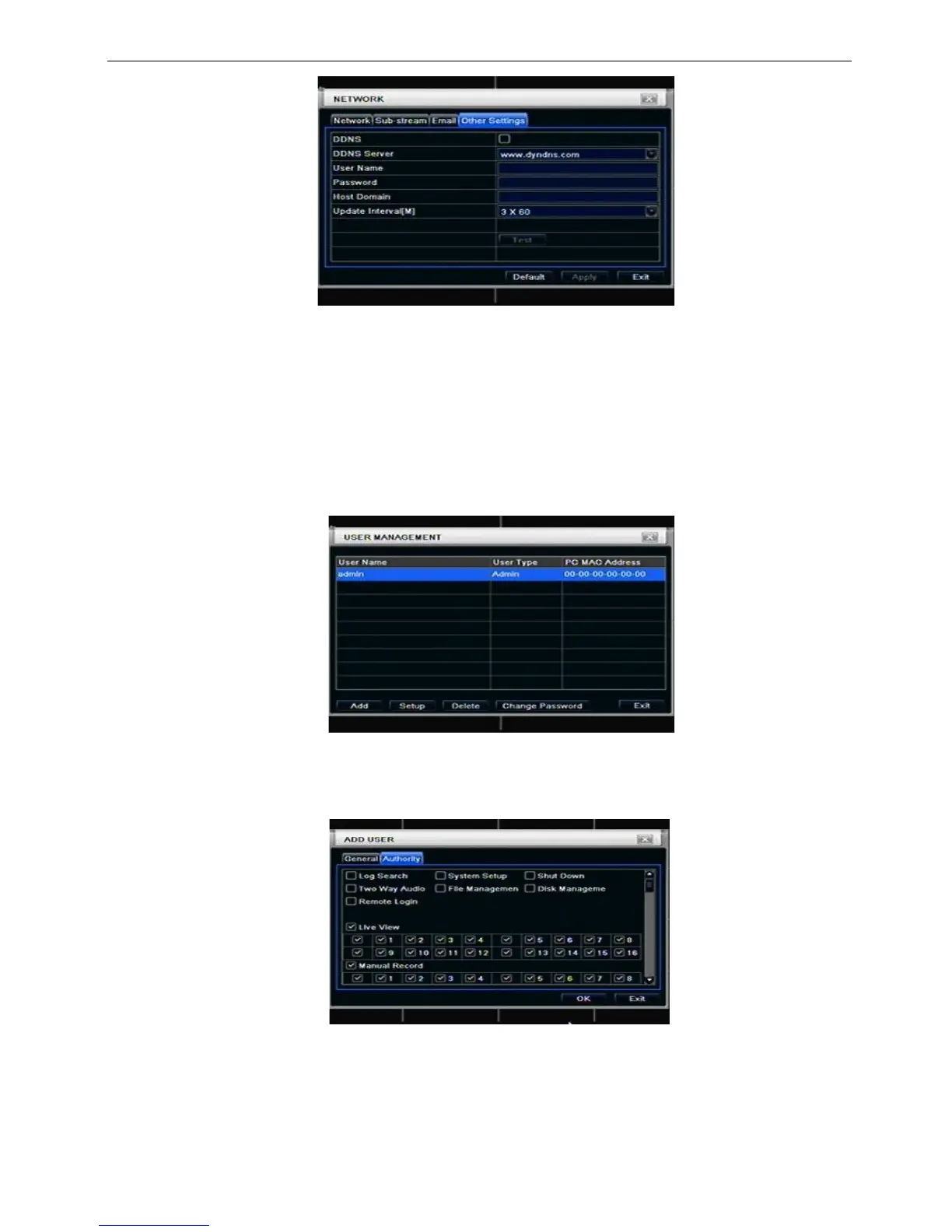 Step1: enter into system configurationuser management configuration; refer to Fig 4-33: