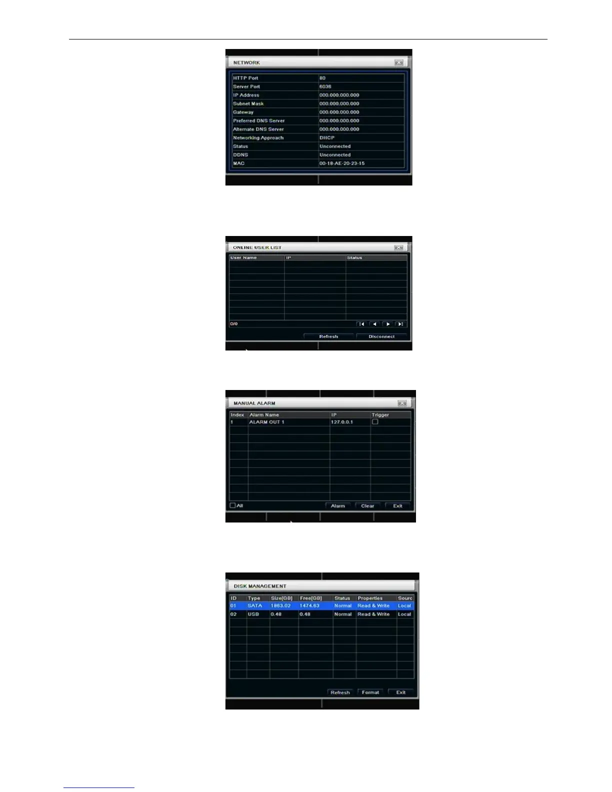 Note: please format the hard disk before record. If not being formatted, it will show the status of the