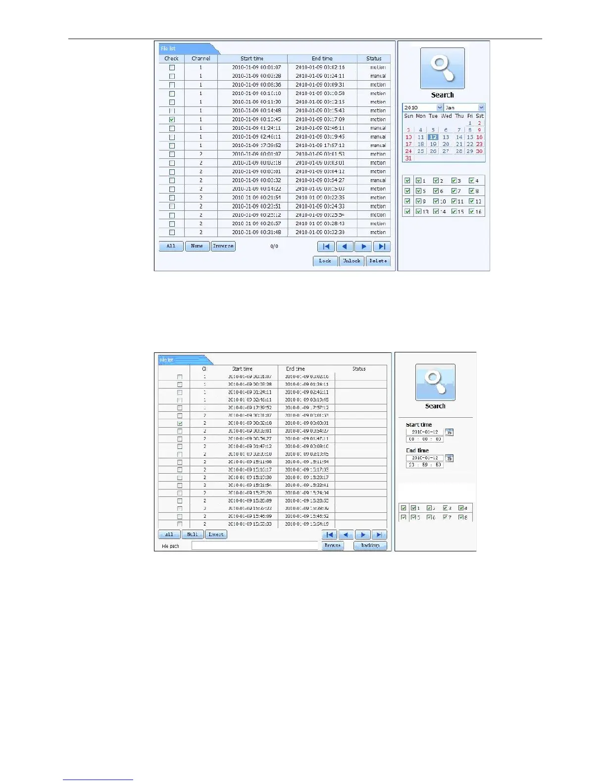 Step1: select channels, set the start and end time, then click “search’ button, the file information will be