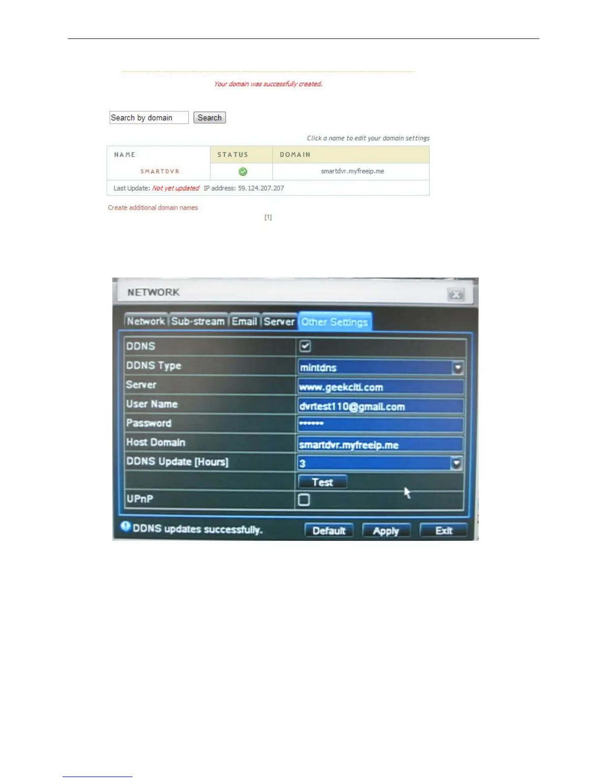 Host Domain: smartdvr.myfreeip.me (you create on www.geekciti.com website, as step 2)