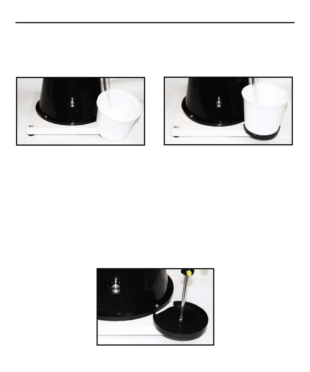 3) Center the hole in the black cup holder with the hole in the base and screw the black cup holder into