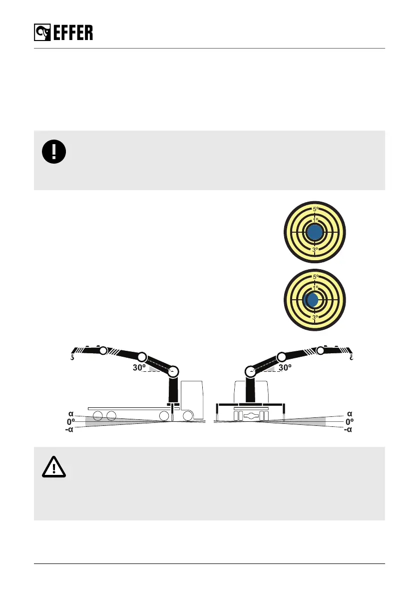 the vehicle must be completely levelled in any direction (α=0º) with the crane in
