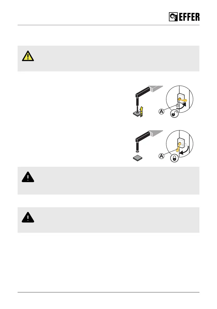 4. Move the lever (A) to the vertical position