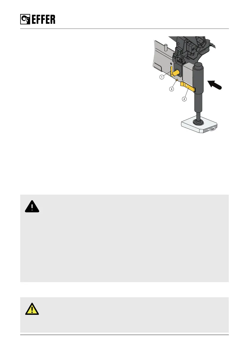 3. Turn the locking device (1) 180° pointing downwards