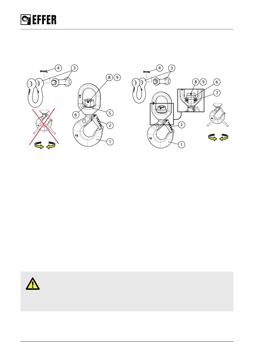 • Verify that the plane bearing/washer (5) or the swivel (7) is in good condition.