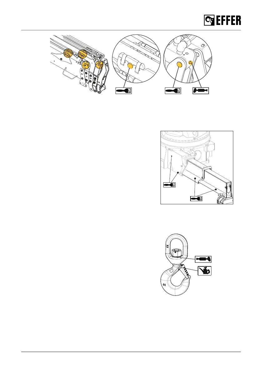 • Grease the supports and locking pins located on the rod of the extension cylinder.