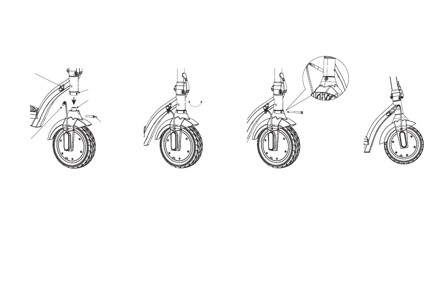 1:front fork 2: threaded pipe 3: M8 * 45 hexagon socket head screw 4: Motor cable female plug 5: Motor cable male plug