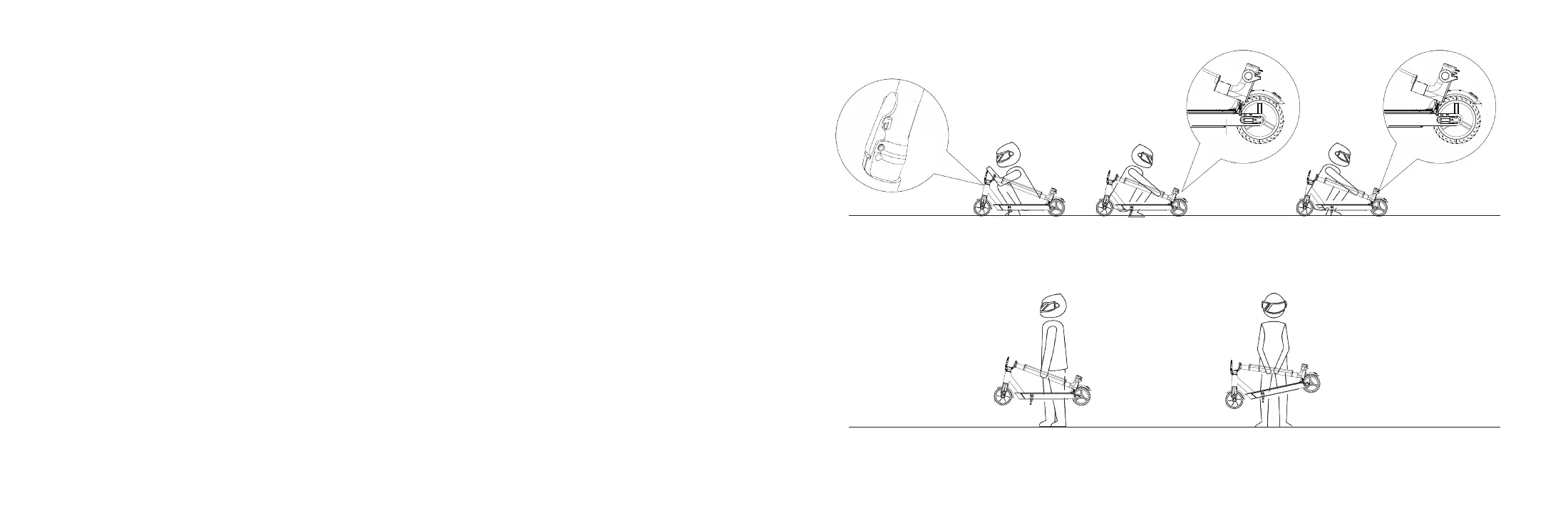 on the rear fender. To open, press the bell trigger to remove from the buckle, erect the handlebar and lock the folding structure.