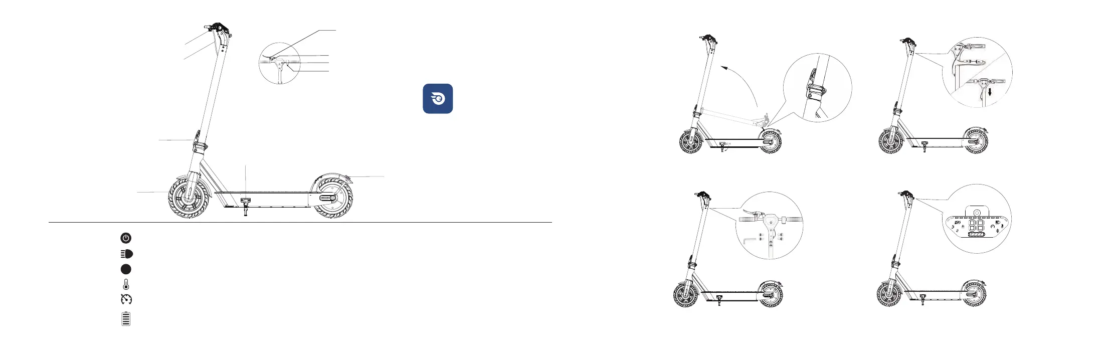 After the scooter is turning on, press the button to turn on or off all the lights (the front light and rear light).