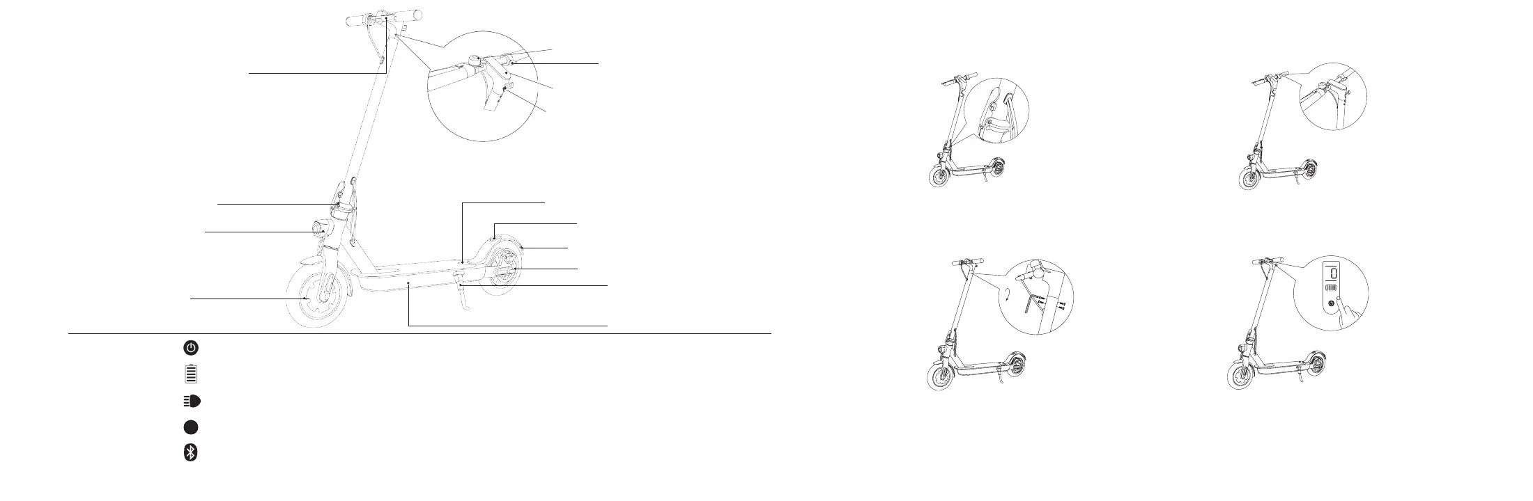 When the scooter is off, press the button to turn on the scooter; When the scooter is on, press and hold for five seconds to