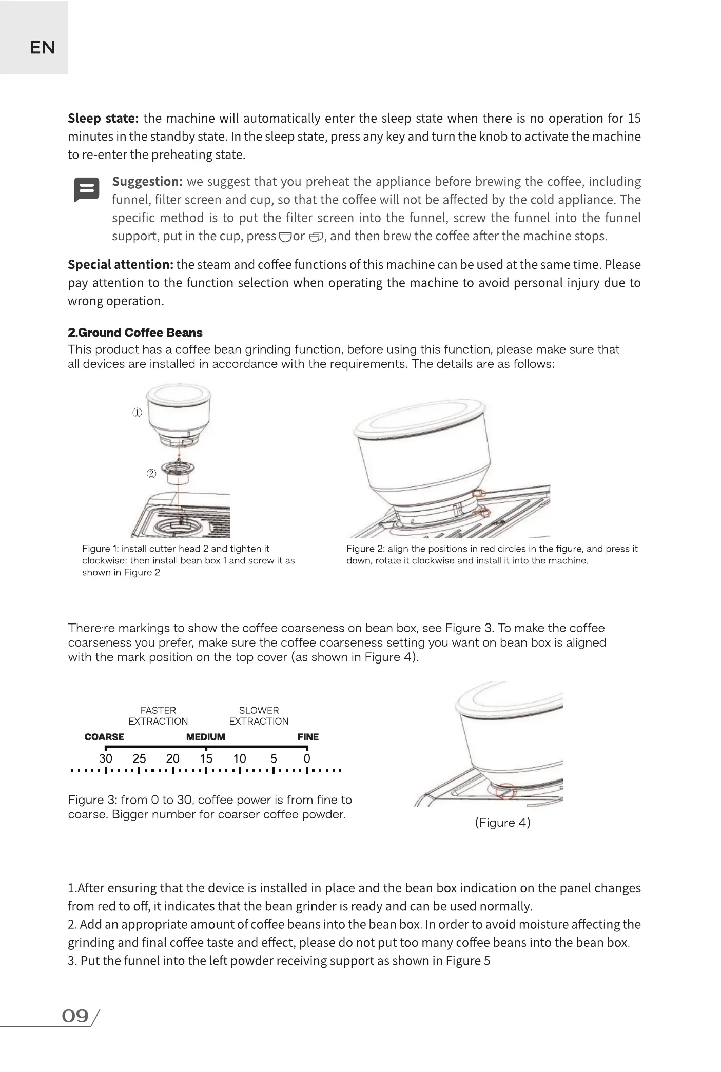 minutes in the standby state. In the sleep state, press any key and turn the knob to activate the machine