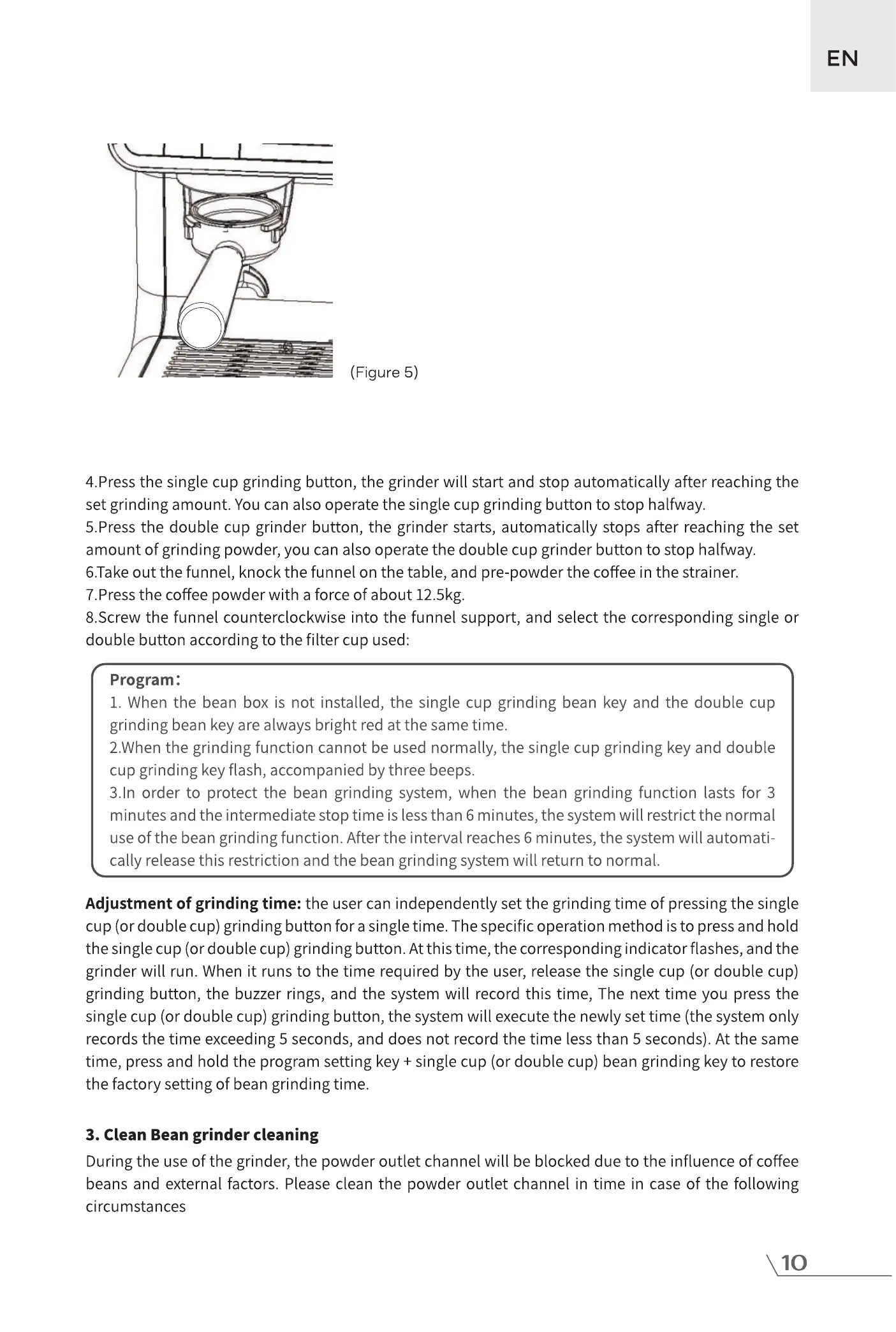 3.1n order to protect the bean grinding system, when the bean grinding function lasts for 3