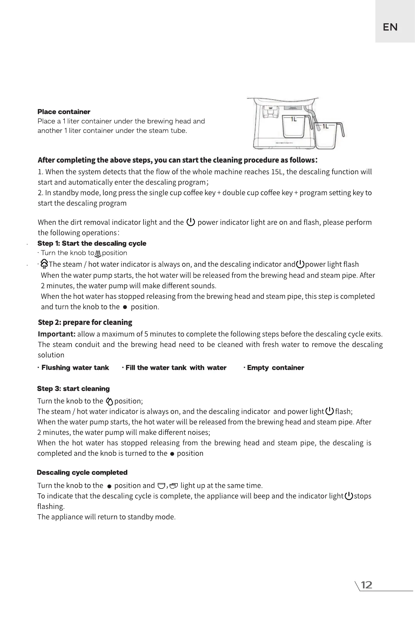 Important: allow a maximum of 5 minutes to complete the following steps before the descaling cycle exits.