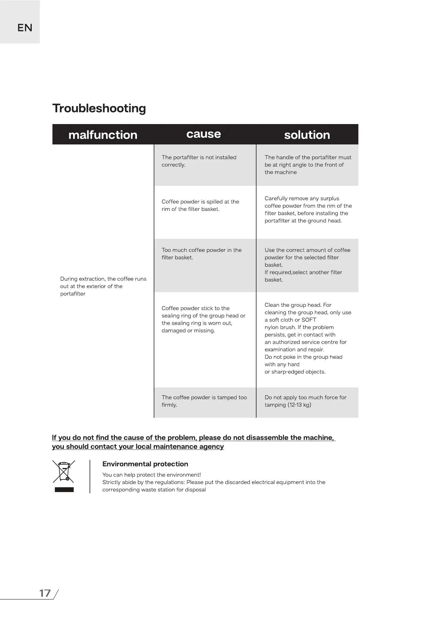 If you do not find the cause of the problem, please do not disassemble the machine,