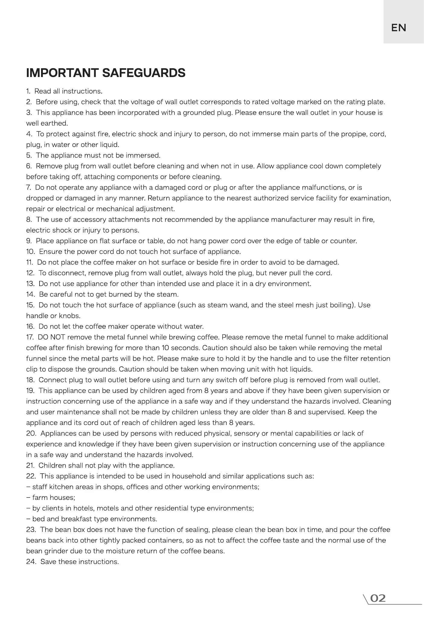 23. The bean box does not have the function of sealing, please clean the bean box in time, and pour the coffee