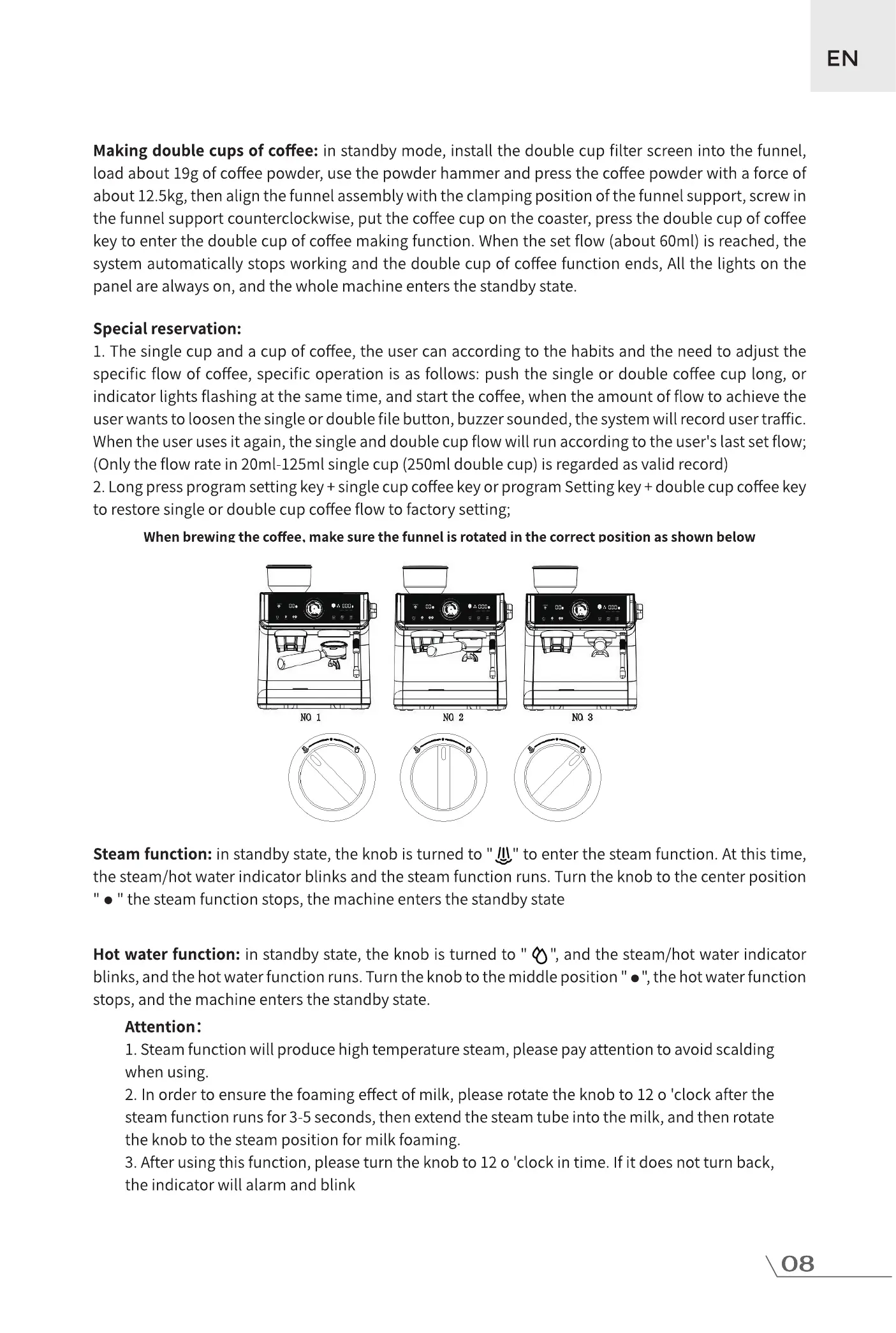 1. Steam function will produce high temperature steam, please pay attention to avoid scalding