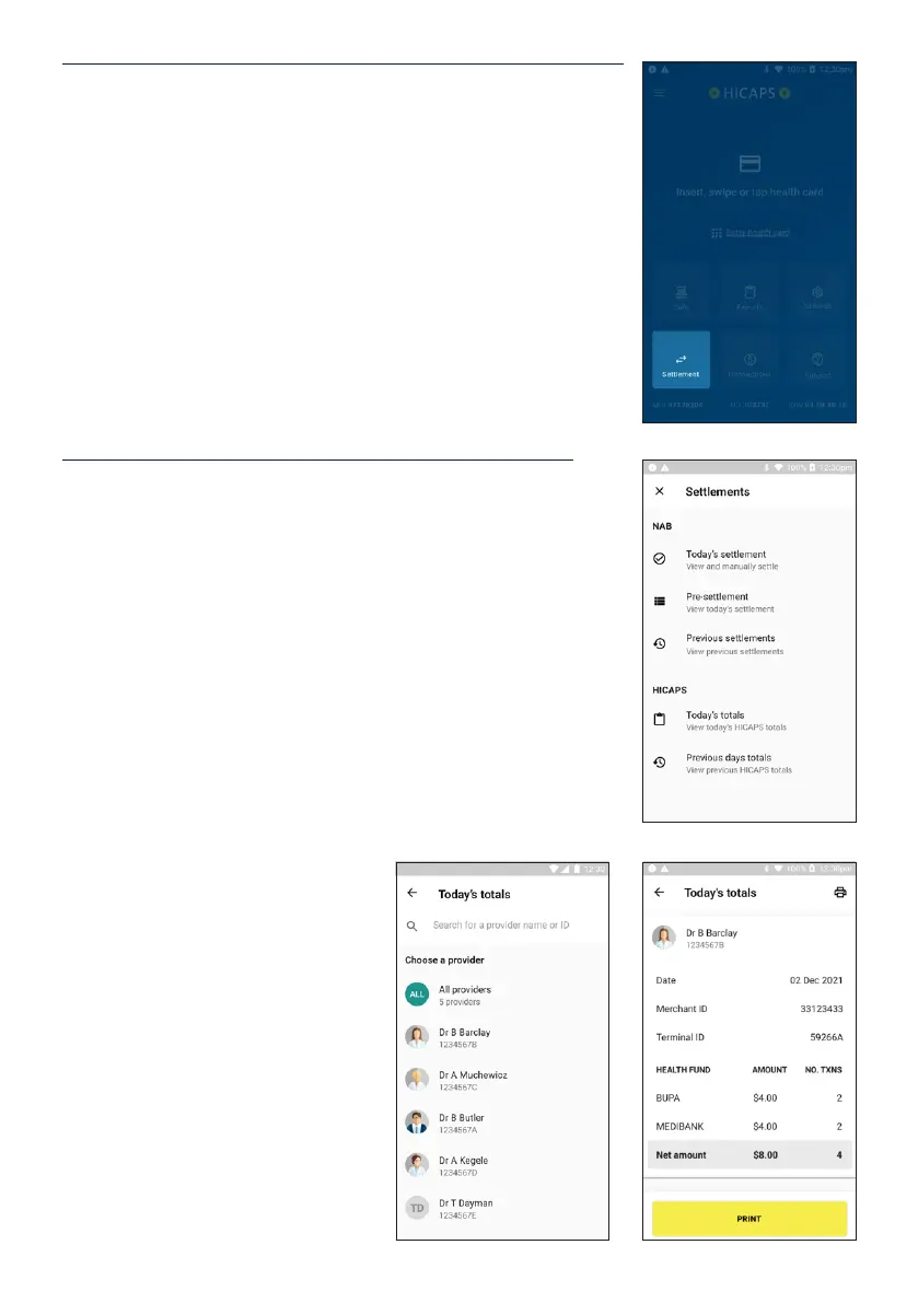 Tap Settlement on the HICAPS Home Screen