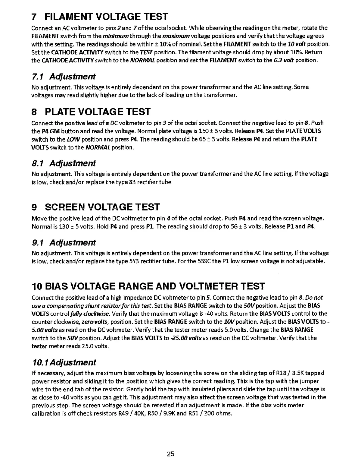 7 FILAMENT VOLTAGE TEST