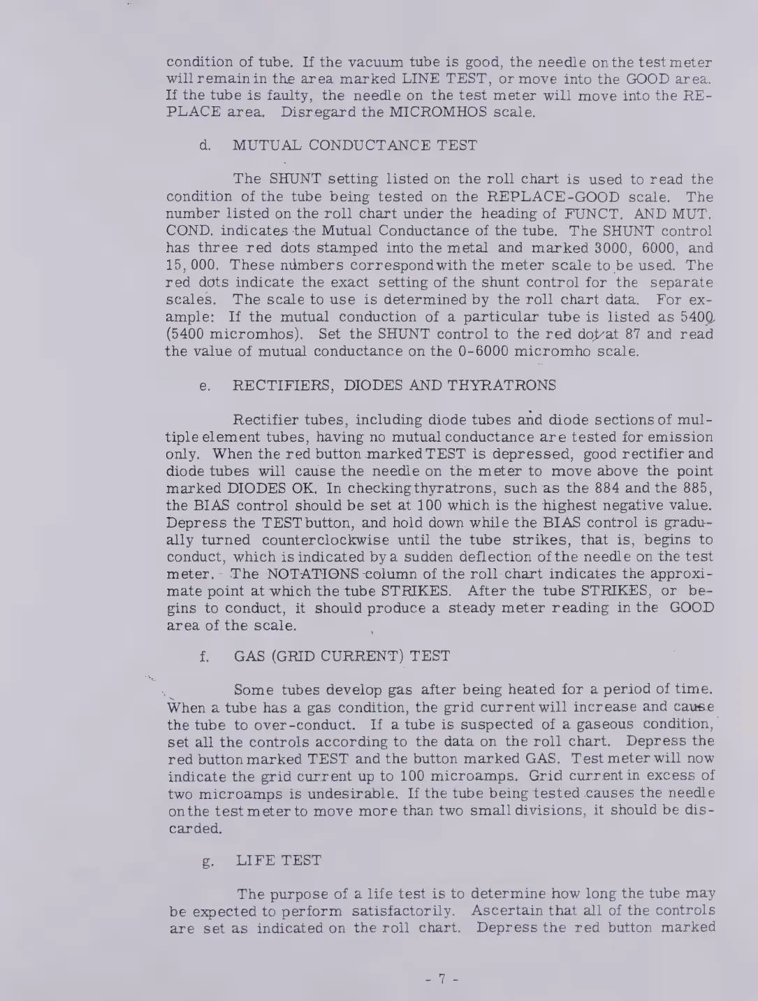 Hickok 6000A - Mutual Conductance Test; Rectifiers, Diodes, and Thyratrons; Gas (Grid Current) Test; Life Test