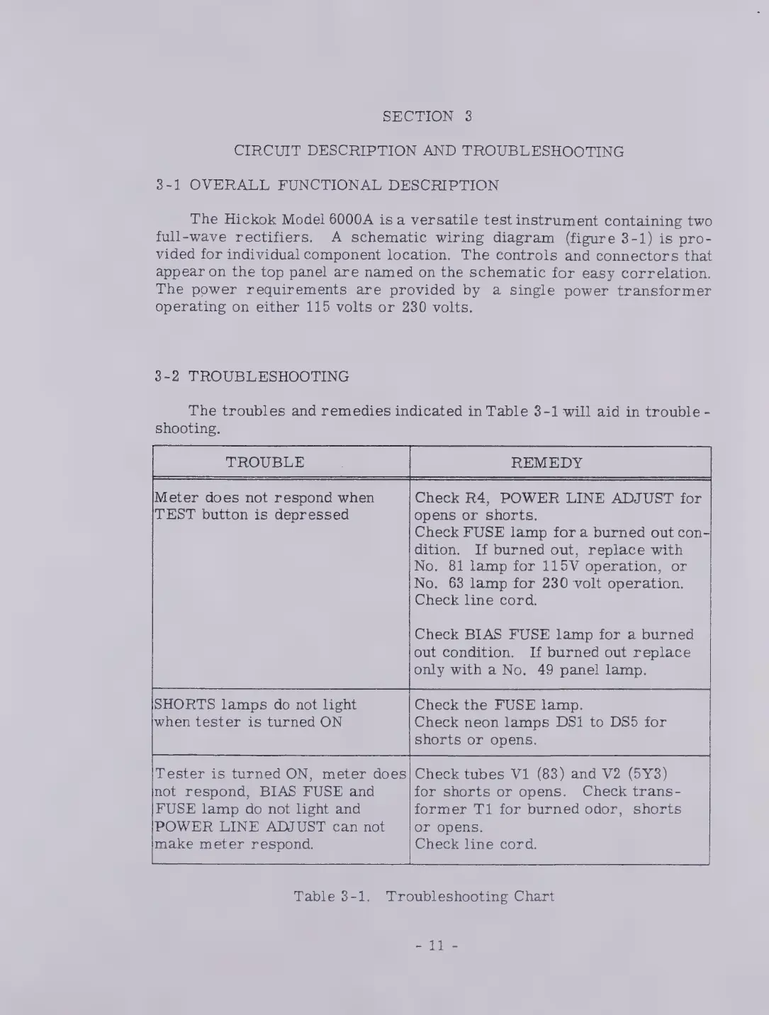 Hickok 6000A - Circuit Description and Troubleshooting; Overall Functional Description TI