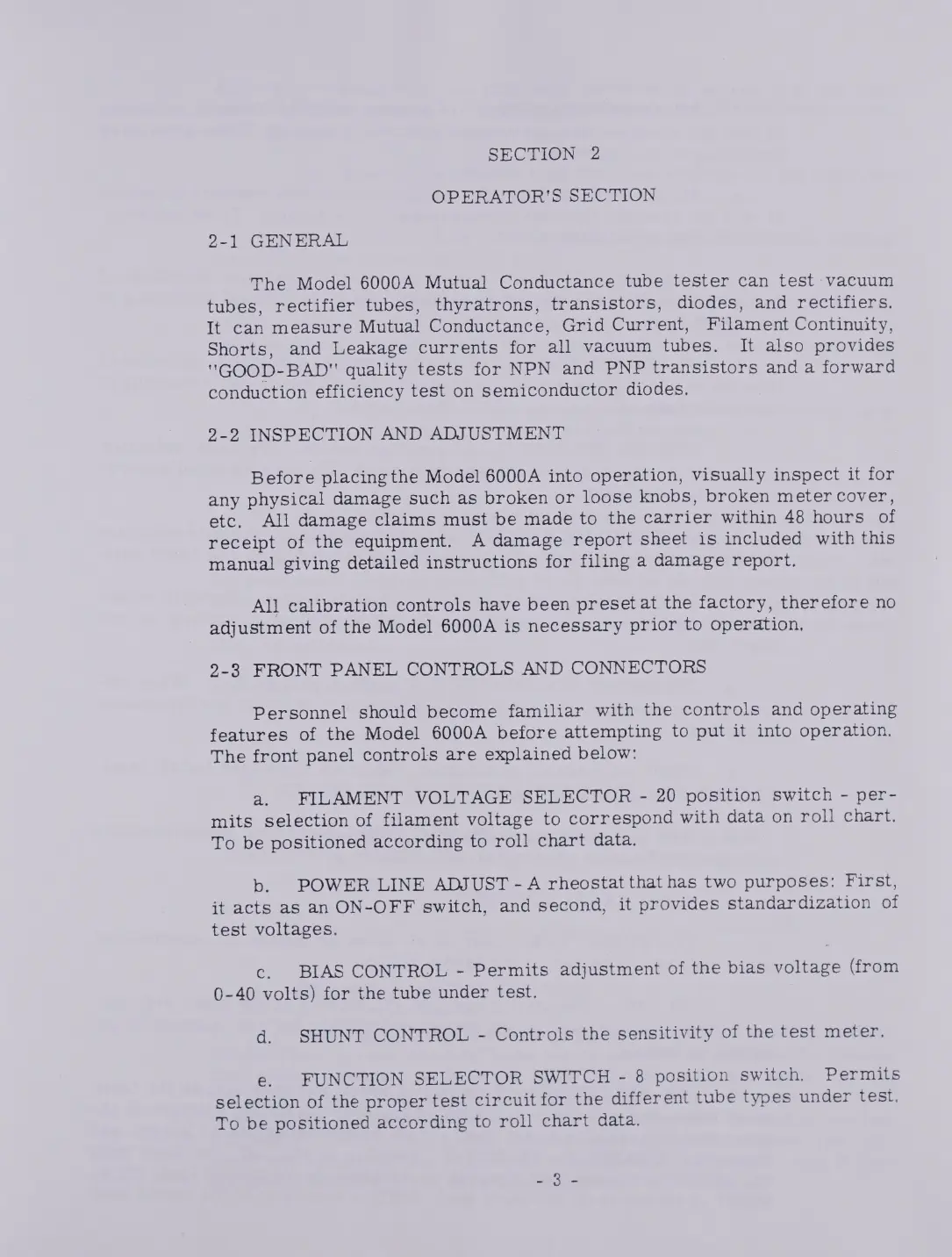 Hickok 6000A - Operatorssection; General; Inspection and Adjustment