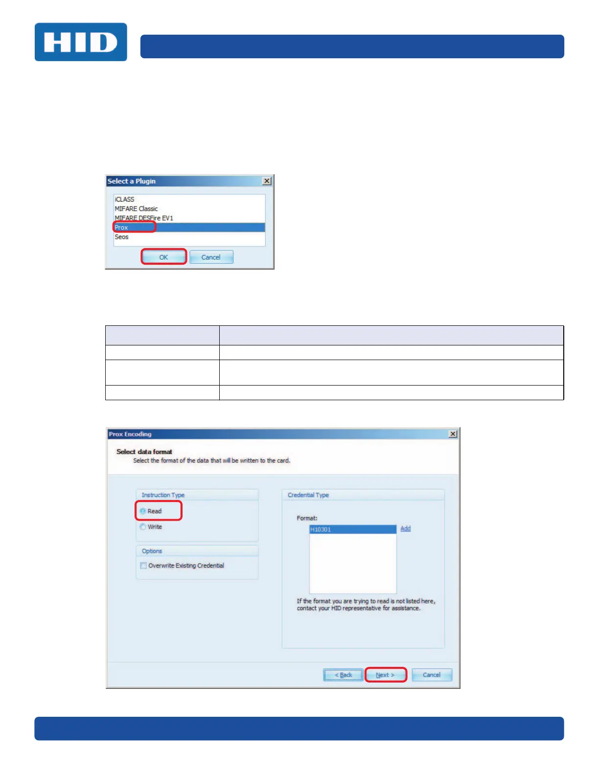 This section covers the Work Instruction wizard for Prox, with the HID Access Application encoding.