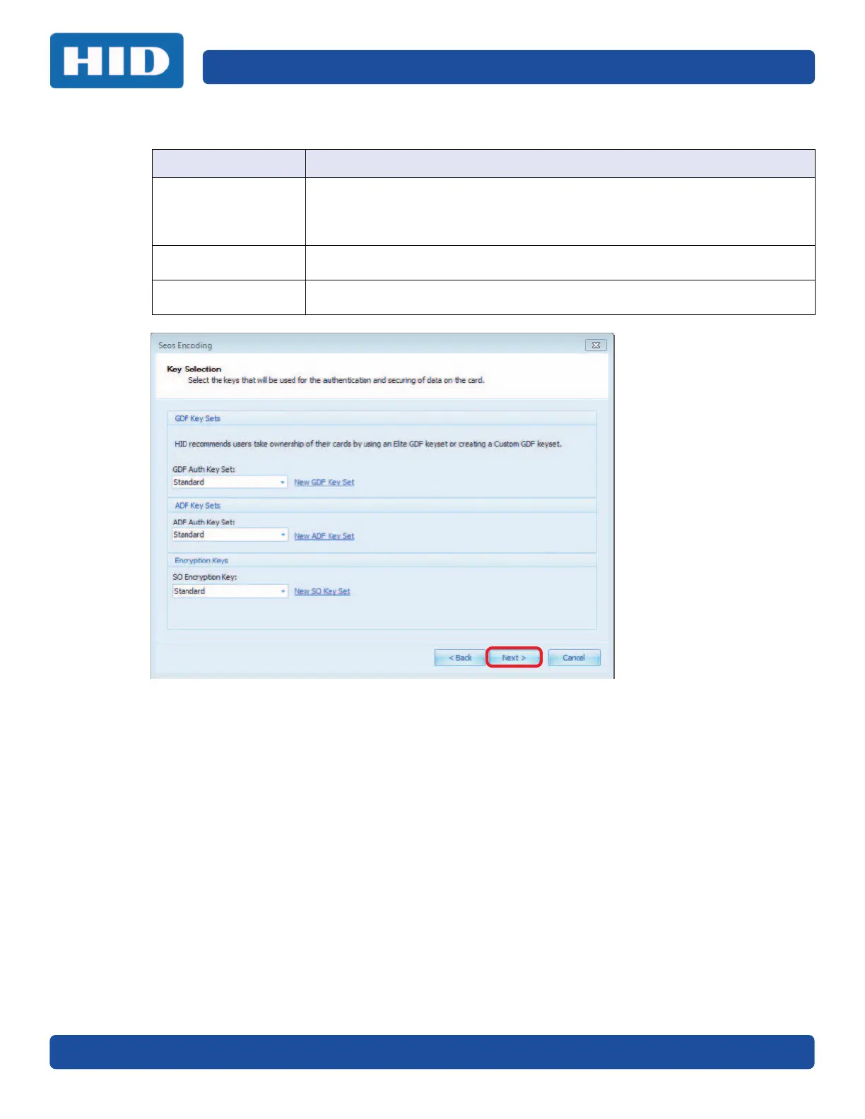 Encryption Keys SO Encryption Key: Standard, Custom or HID defined key sets may be