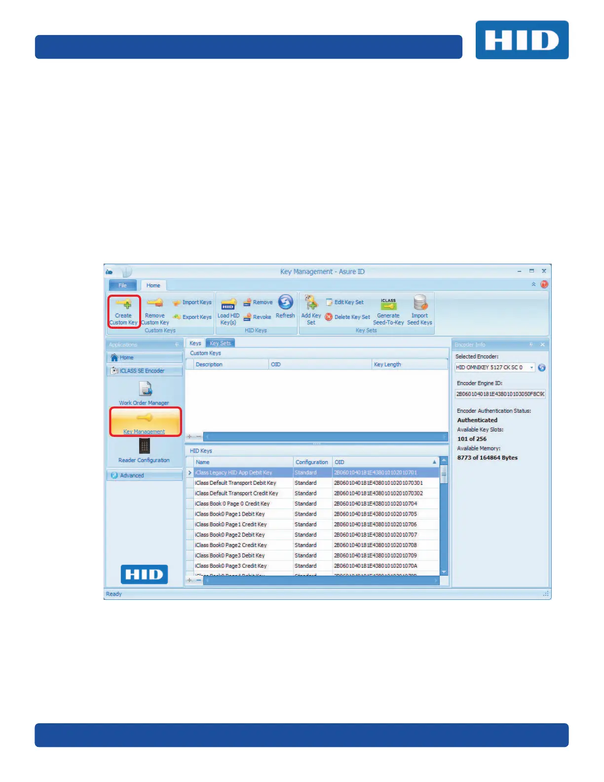 The Create Key process allows you to define and save a new Custom Key to the iCLASS SE Encoder.