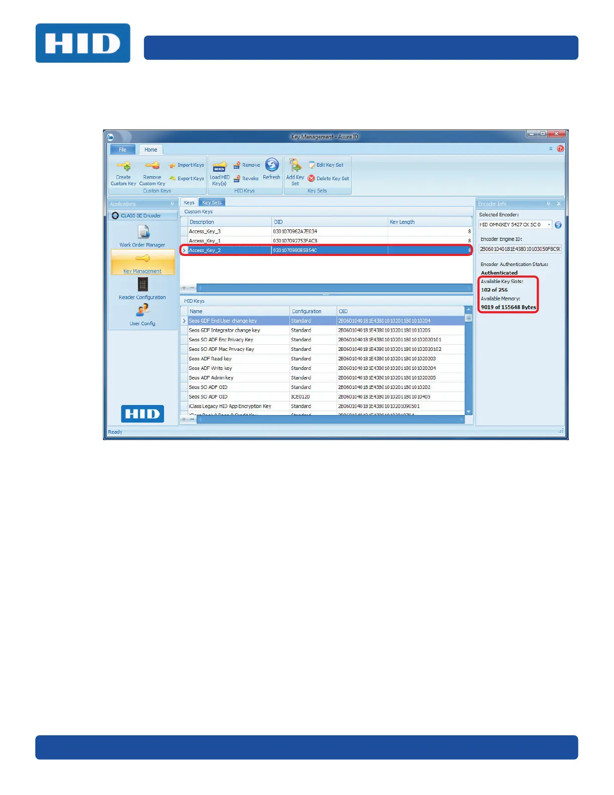 Note: The Available Key Slots and Available Memory displays the updated status.