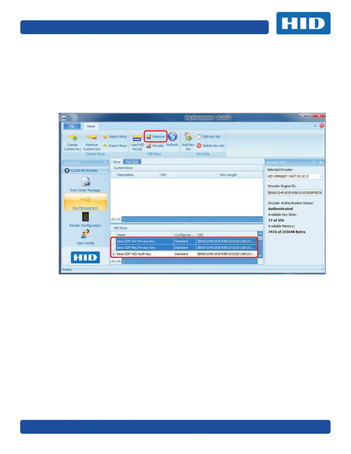 2. Select the HID Key(s) to be removed from the HID Keys pane.