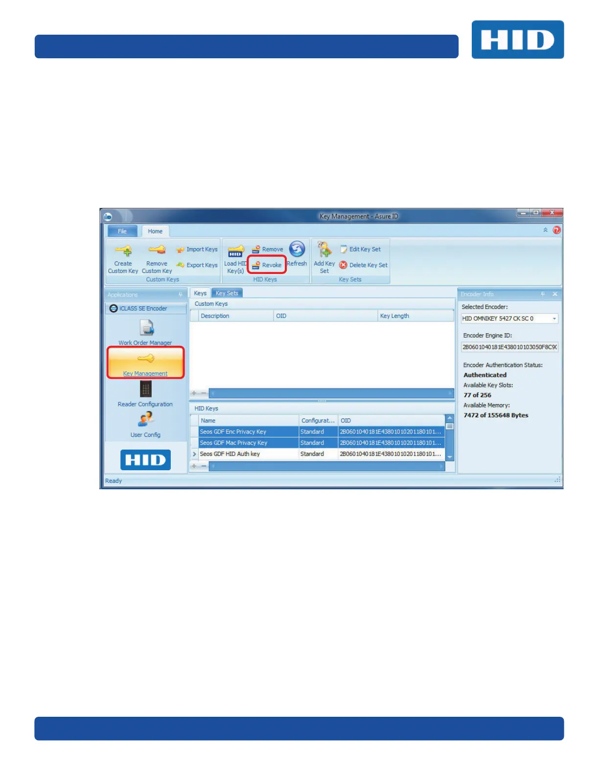 3. Once HID Keys have been revoked, they are not allowed to be reinstalled on the device.