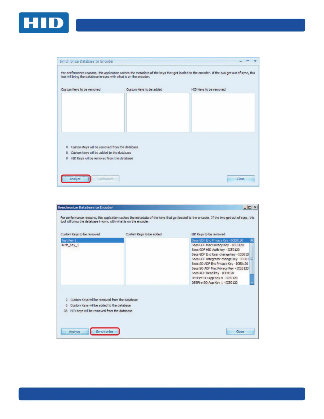 6. The HID keys need to be re-installed to complete the synchronization. For more information