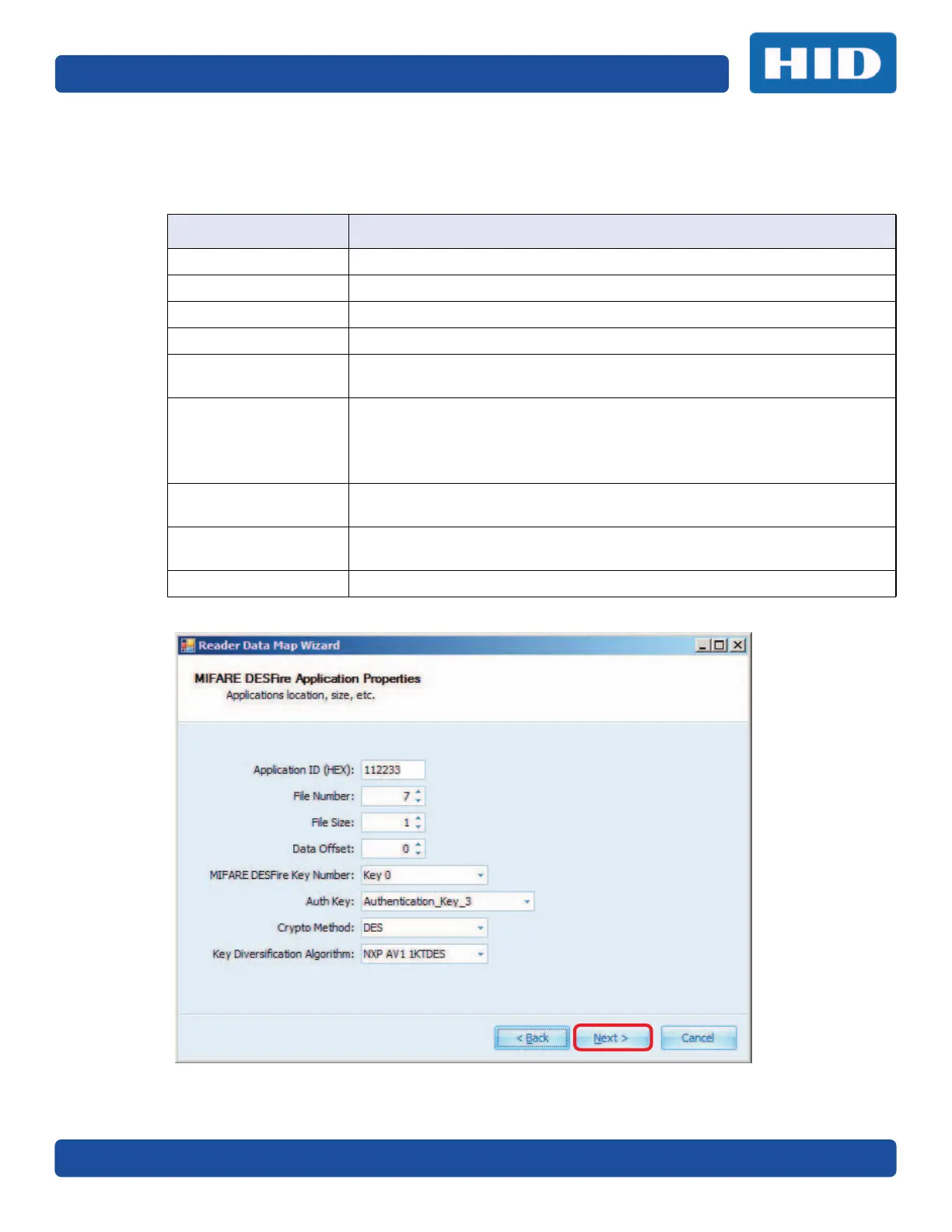 Crypto Method Options are: None, DES, or AES (AES is available with MIFARE DESFire EV1