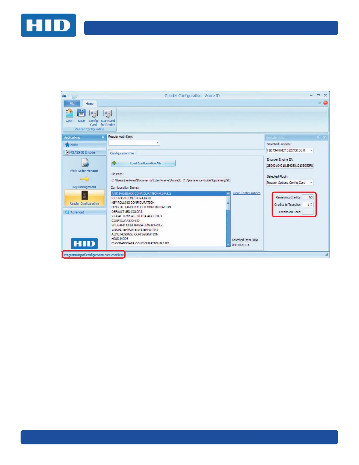 7. Place an iCLASS Legacy Card on the Encoder (see Credential Programmer How to Order