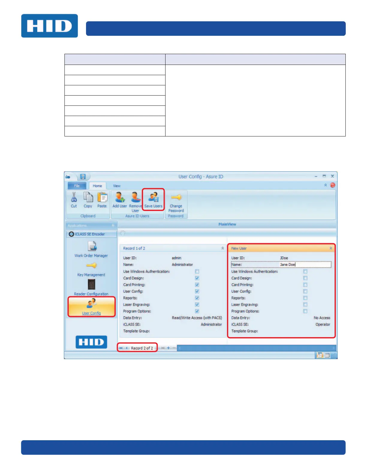 5. The new user is now listed on the Main View window. The Record identifier in the bottom of the
