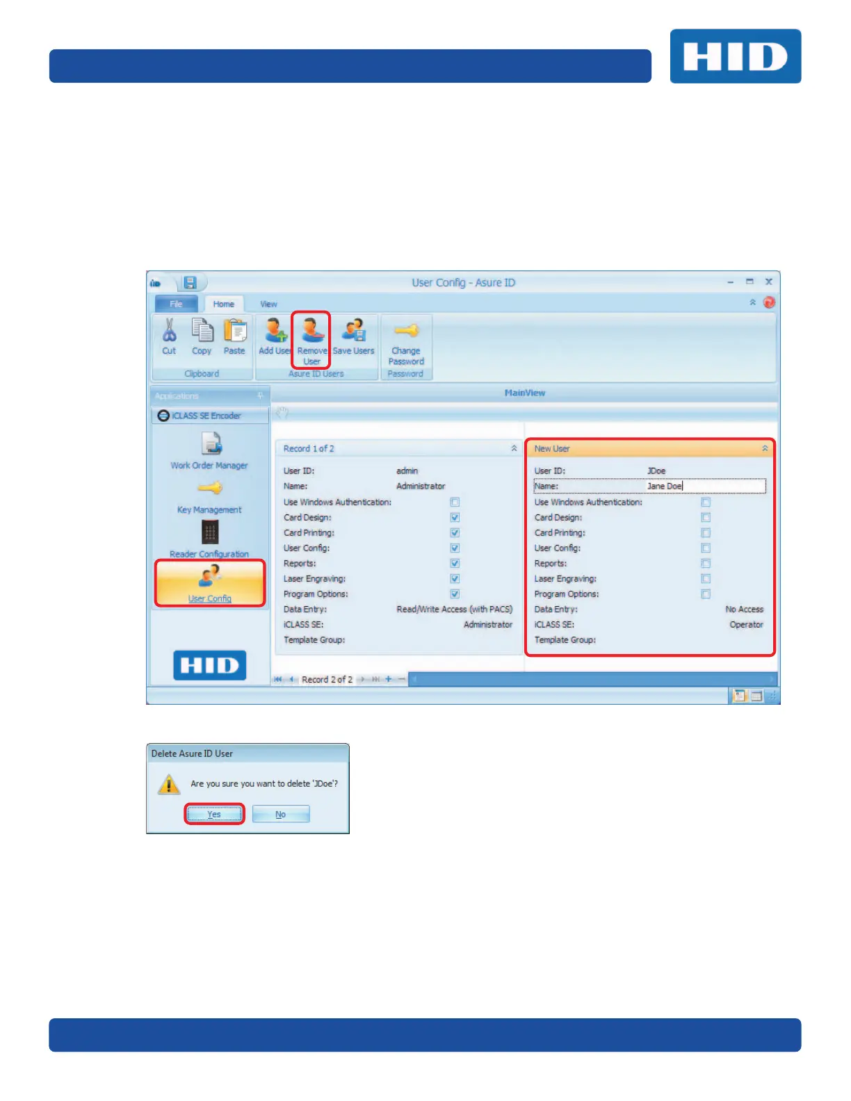 4. Click Yes to verify the deletion. The User’s Record is removed from the list.