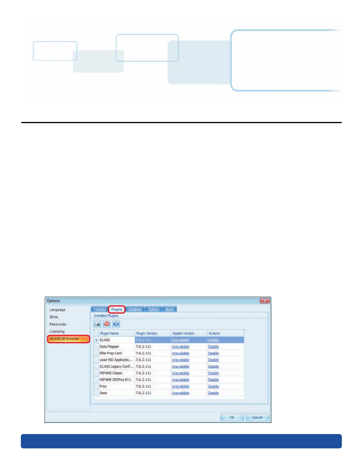 During initial installation, all required plugins are installed. By default, the iCLASS SE Encoder Kit ships