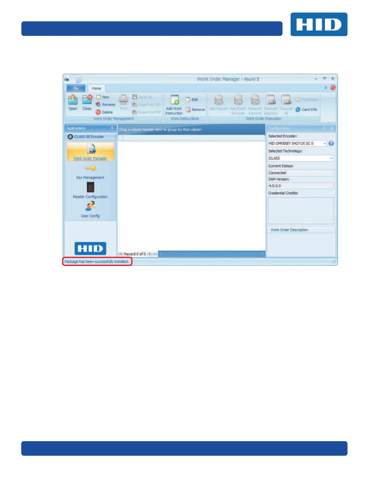 5. When successfully loaded, the message Package has been successfully installed appears at