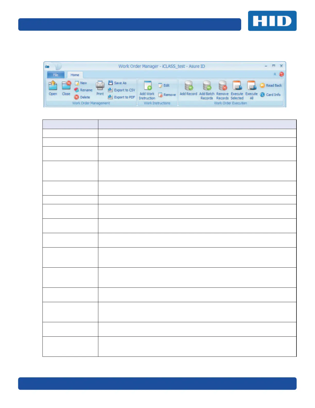 5.1.1 Work Order Manager Toolbar