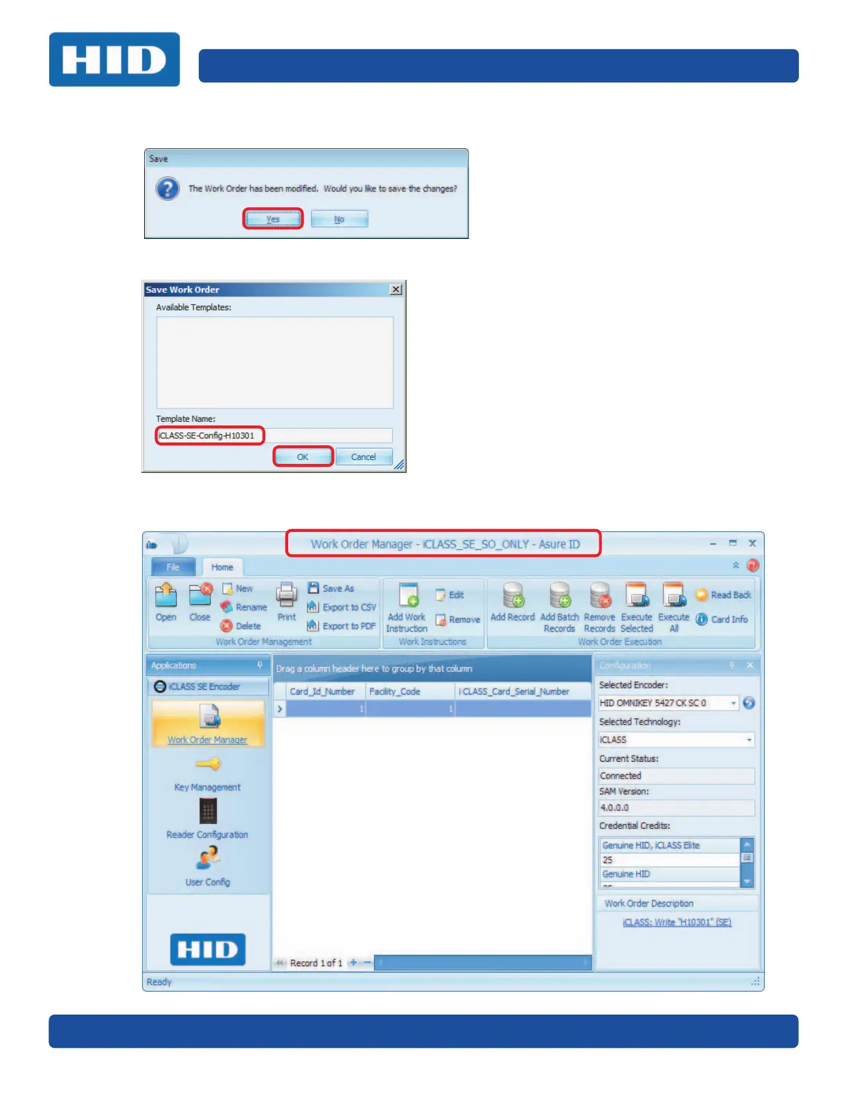 4. Select Yes to save the Work Order.
