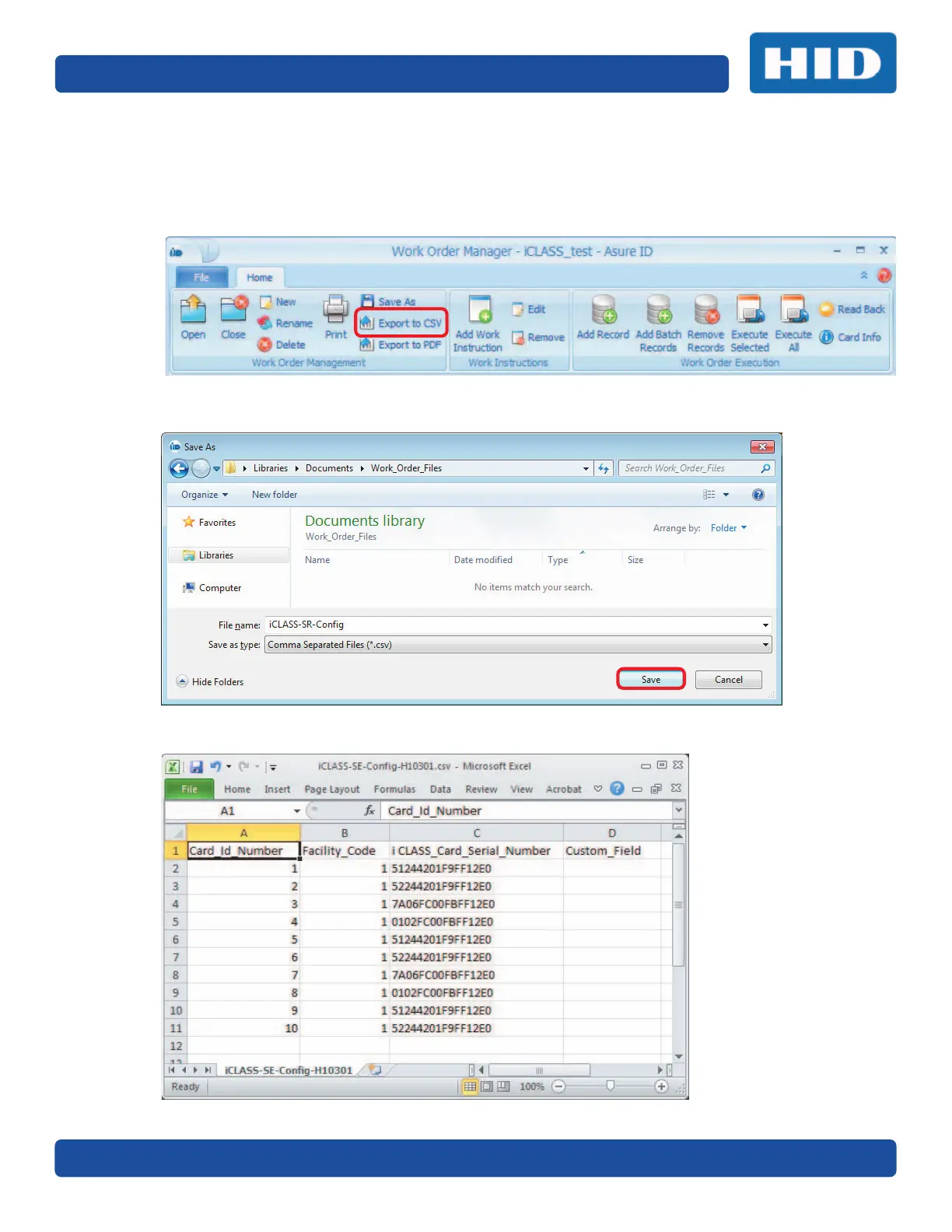 Work Order Data can be exported to a Comma Separated Values file (CSV) file.